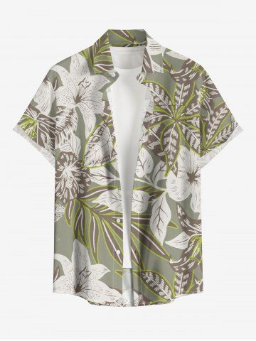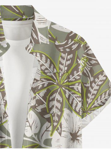 Chemise hawaïenne grande taille pour homme, à imprimé floral tropical et feuilles, boutons et poche. - Vert Clair - Vert Clair
