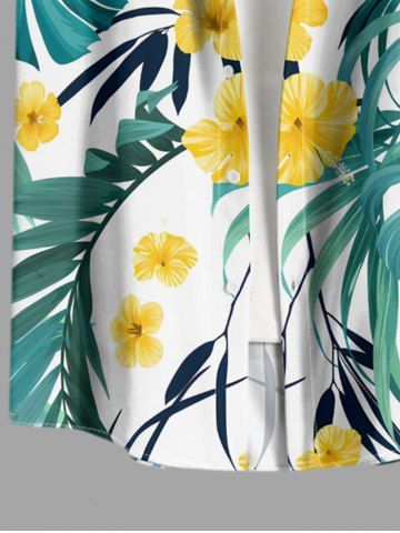 Chemise à Manches Courts> Chemise hawaïenne grande taille pour homme, à imprimé floral tropical et feuilles, boutons et poche.