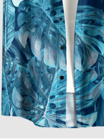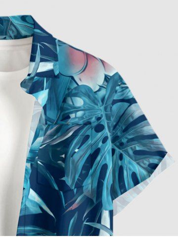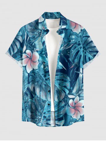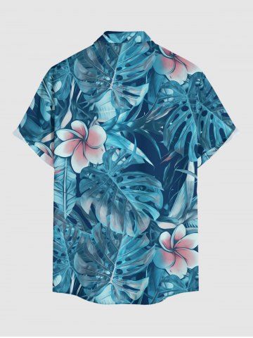 Chemise hawaïenne grande taille pour homme, à imprimé floral tropical et feuilles, boutons et poche. - Bleu Profond - Xl
