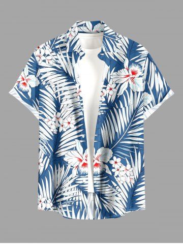 Chemise hawaïenne grande taille pour homme, à imprimé floral tropical et feuilles, boutons et poche. - Bleu - Bleu