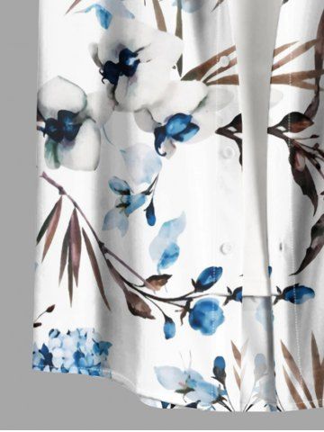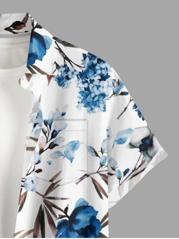 Chemise hawaïenne grande taille pour homme, à imprimé floral tropical et feuilles, boutons et poche. - Blanc - Blanc