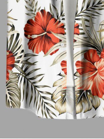 Chemise hawaïenne grande taille pour homme, à imprimé floral tropical et feuilles d'hibiscus, avec boutons et poche. - Blanc - Blanc