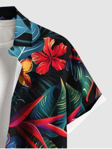 Chemise à Manches Courts > Chemise hawaïenne grande taille pour homme, à imprimé floral tropical et feuilles d'hibiscus, boutons et poche.