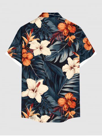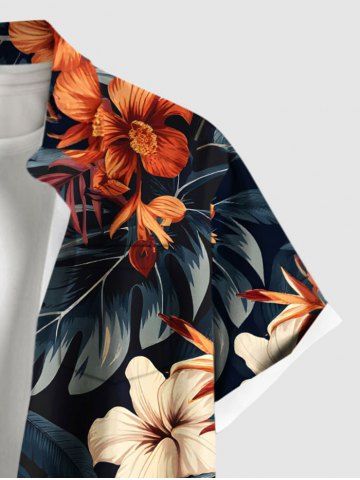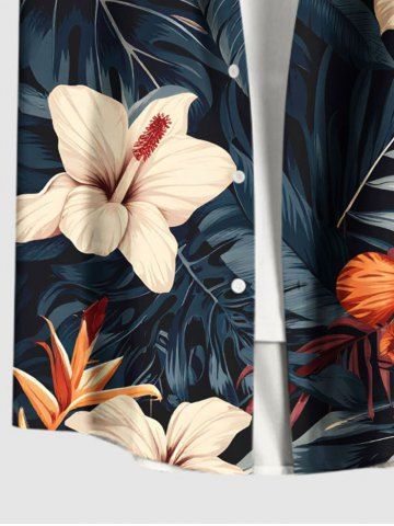 Chemise à Manches Courts> Chemise hawaïenne grande taille pour homme, à imprimé floral tropical et feuilles d'hibiscus, boutons et poche.