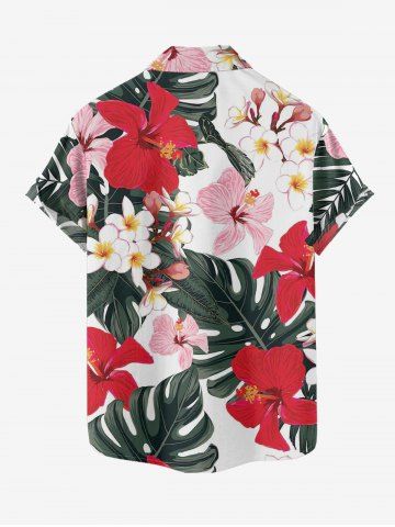 Chemise à Manches Courts> Chemise hawaïenne grande taille pour homme, à imprimé floral tropical et feuilles d'hibiscus, boutons et poche.