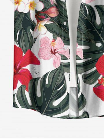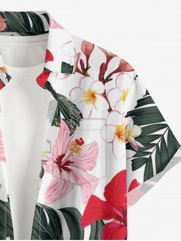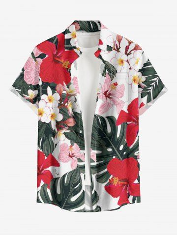Chemise à Manches Courts> Chemise hawaïenne grande taille pour homme, à imprimé floral tropical et feuilles d'hibiscus, boutons et poche.