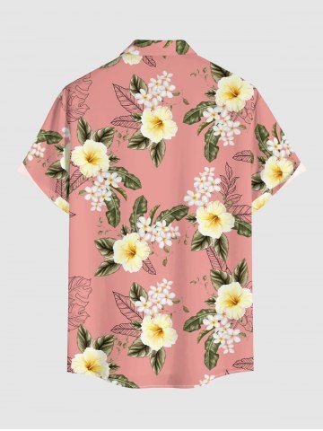 Chemise hawaïenne grande taille pour homme, à imprimé floral tropical et feuilles d'hibiscus, boutons et poche. - Rose - Rose