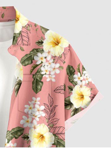 Chemise à Manches Courts > Chemise hawaïenne grande taille pour homme, à imprimé floral tropical et feuilles d'hibiscus, boutons et poche.