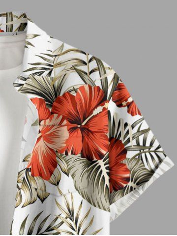 Chemise hawaïenne grande taille pour homme, à imprimé floral tropical et feuilles d'hibiscus, boutons et poche. - Blanc - Blanc