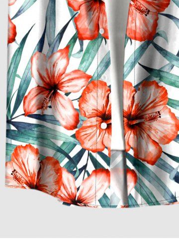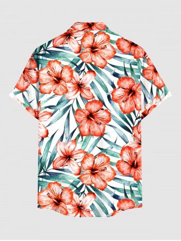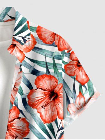 Chemise à Manches Courts> Chemise hawaïenne grande taille pour homme, à imprimé floral tropical et feuilles d'hibiscus, boutons et poche.