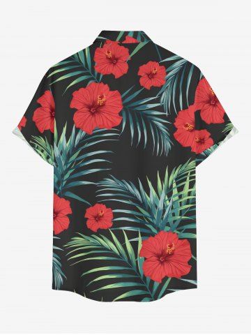 Chemise hawaïenne grande taille pour homme, à imprimé floral tropical et feuilles d'hibiscus, boutons et poche. - Noir - Noir