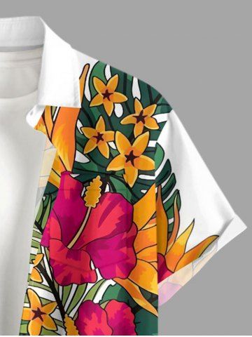 Chemise hawaïenne grande taille pour homme, à imprimé floral tropical et feuilles d'hibiscus, boutons et poche. - Blanc - Blanc