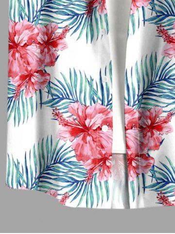 Chemise à Manches Courts > Chemise hawaïenne grande taille pour homme, à imprimé floral tropical et feuilles d'hibiscus, boutons et poche.