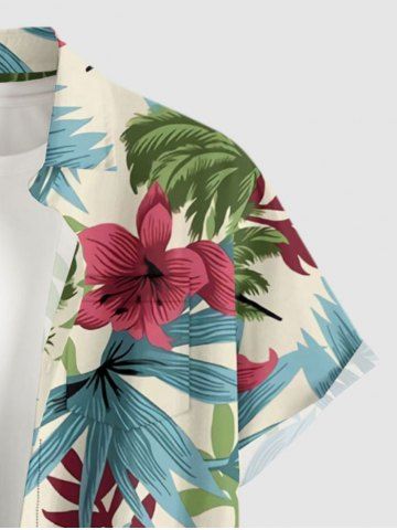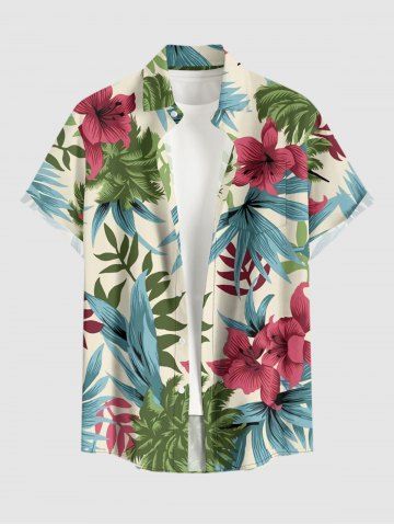 Chemise à Manches Courts> Chemise hawaïenne grande taille pour homme, à imprimé floral tropical et feuilles d'hibiscus, boutons et poche.