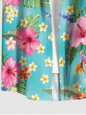 Chemise à Manches Courts> Chemise hawaïenne grande taille pour homme, à imprimé floral tropical et feuilles d'hibiscus, boutons et poche.