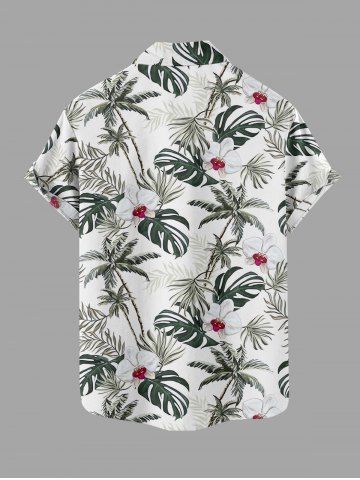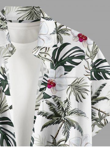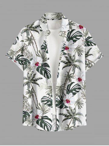 Chemise hawaïenne grande taille pour homme, à imprimé floral tropical, feuilles et cocotiers, boutons et poche. - Blanc - Blanc