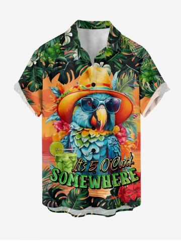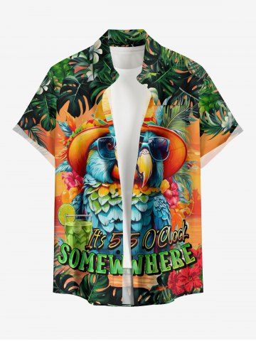 Chemise à Manches Courts> Chemise hawaïenne grande taille pour homme, à imprimé floral tropical, fruits et jus de fruits, boutons et poche. Motif perroquet. Imprimé fruits et fleurs. Style tropical. Imprimé feuilles tropicales. Chemise à boutons et poche.