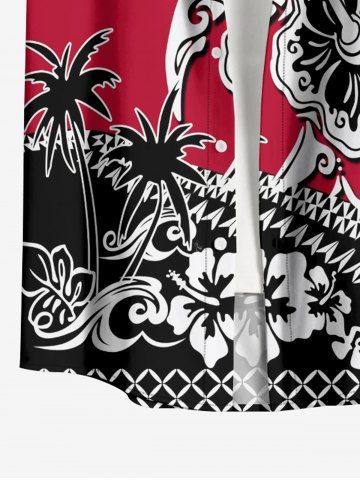 Chemise hawaïenne grande taille pour homme, à imprimé géométrique de cocotiers et d'hibiscus, boutons et poche. - Rouge - Rouge