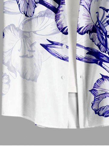 Chemise hawaïenne grande taille pour homme, à imprimé hibiscus, boutons et poches. - Blanc - Blanc