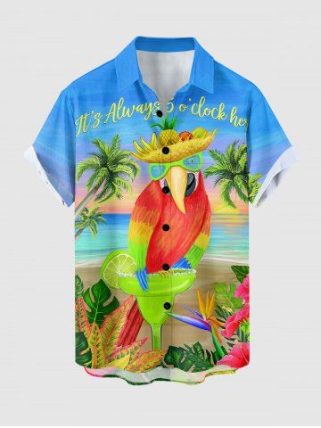 Chemise hawaïenne grande taille pour homme, à imprimé perroquet, cocotier et fleurs, paysage marin, boutons et poche. - Bleu Clair - Bleu Clair