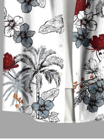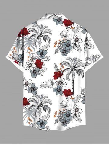 Chemise hawaïenne grande taille pour homme, à imprimé perroquet et cocotiers, boutons et poche. - Blanc - Blanc