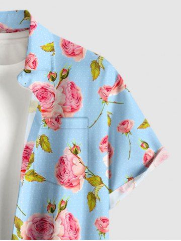 Chemise hawaïenne grande taille pour homme, à imprimé rose et feuilles, boutons et poche. - Bleu Clair - Bleu Clair