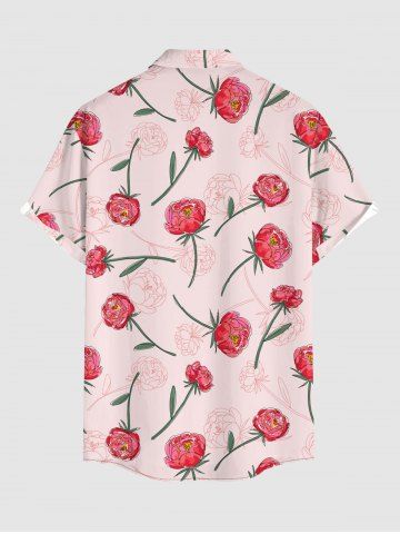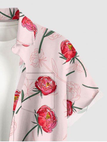 Chemise à Manches Courts> Chemise hawaïenne grande taille pour homme, à imprimé rose et feuilles, boutons et poche.