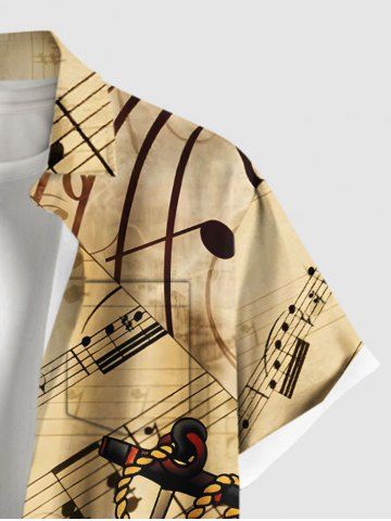 Chemise hawaïenne grande taille pour homme, à imprimé tête de mort, ancre et notes de musique, boutons et poche. - Bronze - 4xl