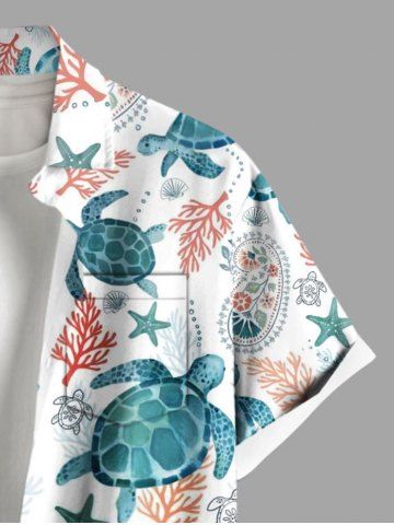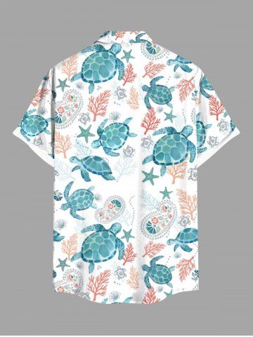 Chemise hawaïenne grande taille pour homme, à imprimé tortue, cachemire, fleurs, feuilles et étoiles de mer, boutons et poche. - Blanc - Blanc