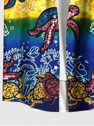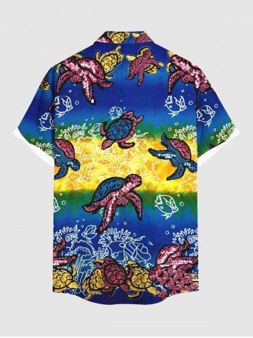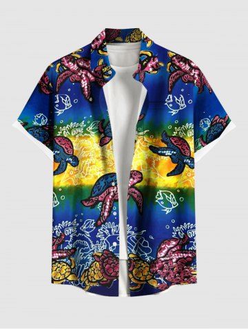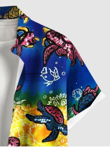 Chemise à Manches Courts> Chemise hawaïenne grande taille pour homme, à imprimé tortue et poisson colorblock, boutons et poche.