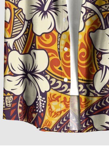 Chemise à Manches Courts> Chemise hawaïenne grande taille pour homme, à imprimé tropical et boutons, avec fleurs d'hibiscus et poche.