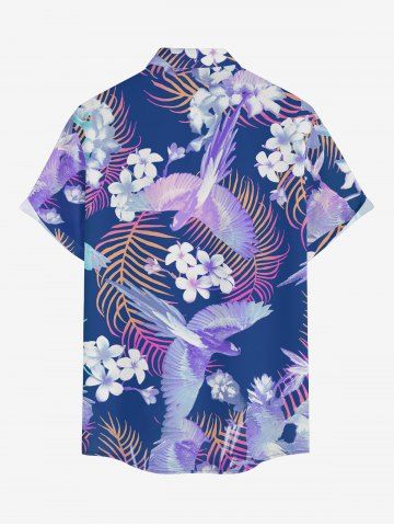 Chemise à Manches Courts> Chemise hawaïenne grande taille pour homme, à imprimé tropical fleurs, feuilles et oiseaux, avec boutons et poche.