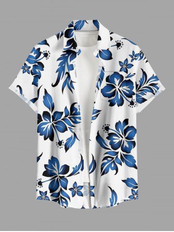 Chemise hawaïenne grande taille pour homme, à imprimé tropical floral et feuilles, boutons et poche. - Bleu Ciel - Bleu Ciel