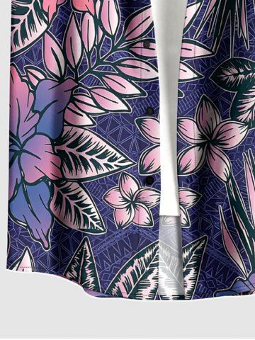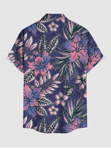 Chemise à Manches Courts> Chemise hawaïenne grande taille pour homme, à imprimé tropical floral et feuilles, boutons et poche.