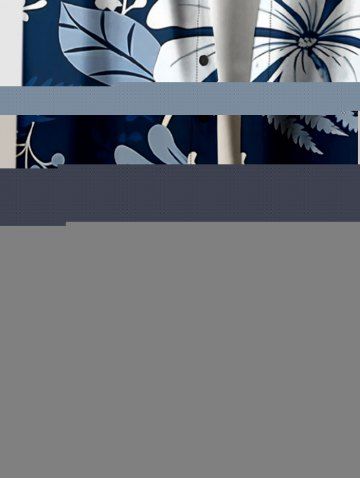 Chemise hawaïenne grande taille pour homme, à imprimé tropical floral et feuilles, boutons et poche. - Bleu Profond - M
