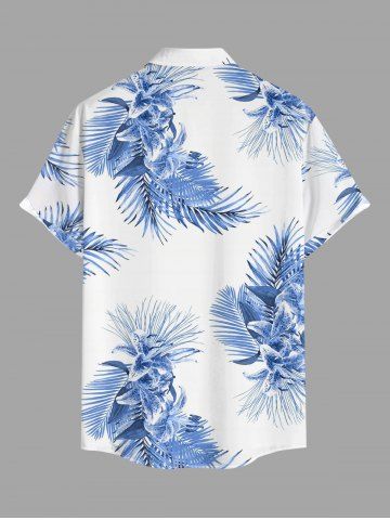 Chemise hawaïenne grande taille pour homme, à imprimé tropical floral et feuilles, boutons et poche. - Bleu Clair - Bleu Clair