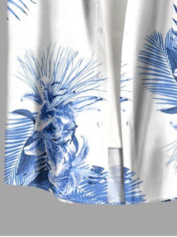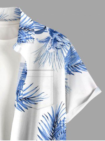 Chemise hawaïenne grande taille pour homme, à imprimé tropical floral et feuilles, boutons et poche. - Bleu Clair - Bleu Clair