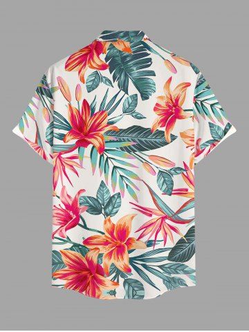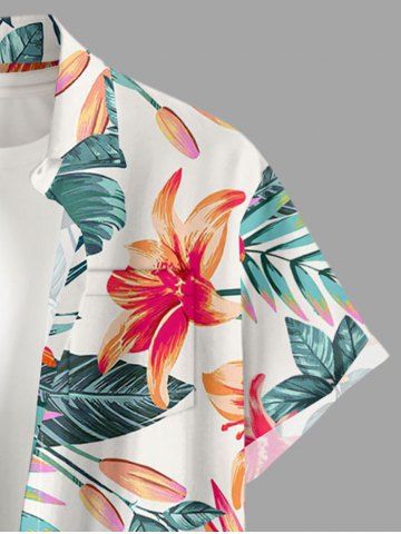 Chemise hawaïenne grande taille pour homme, à imprimé tropical floral et feuilles, boutons et poche. - Blanc - Blanc