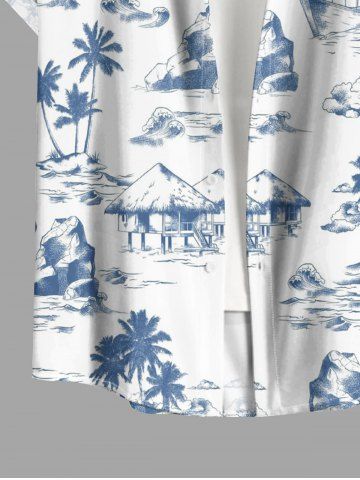 Chemise hawaïenne grande taille pour homme, à motif de cocotiers, voiliers et pierres, boutons et poche. - Blanc - Blanc
