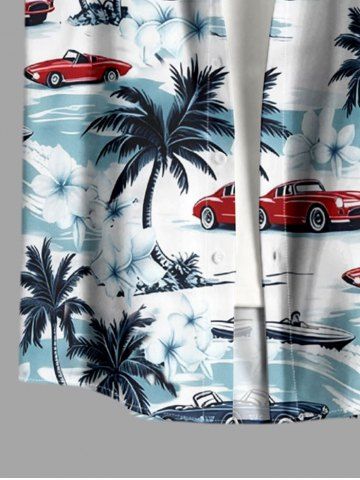Chemise hawaïenne grande taille pour homme, à motifs de cocotiers, de vagues et de voitures, avec poches et boutons. - Blanc - Blanc