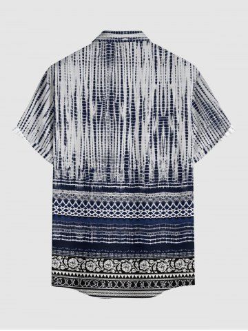 Chemise hawaïenne grande taille pour homme, à motifs floraux ethniques et imprimé tribal, avec boutons et poche. - Bleu Profond - M