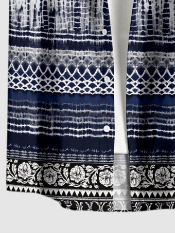 Chemise hawaïenne grande taille pour homme, à motifs floraux ethniques et imprimé tribal, avec boutons et poche. - Bleu Profond - Xl
