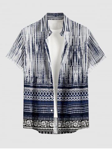 Chemise hawaïenne grande taille pour homme, à motifs floraux ethniques et imprimé tribal, avec boutons et poche. - Bleu Profond - 5xl