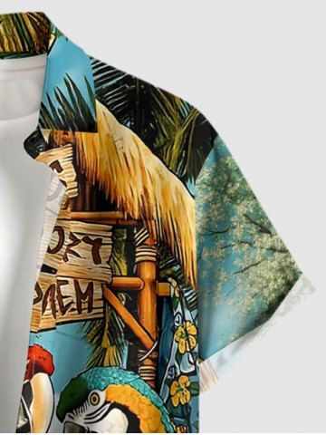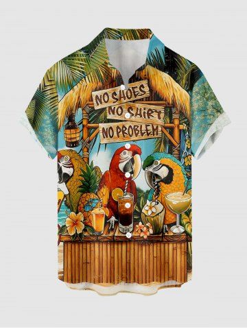 Chemise à Manches Courts> Chemise hawaïenne grande taille pour homme, à motifs perroquets, fleurs, ananas, jus de fruits et paysage marin, avec boutons et poche.