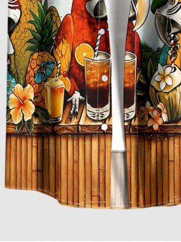 Chemise hawaïenne grande taille pour homme, à motifs perroquets, fleurs, ananas, jus de fruits et paysage marin, avec boutons et poche. - Brun Légère - Marron Clair