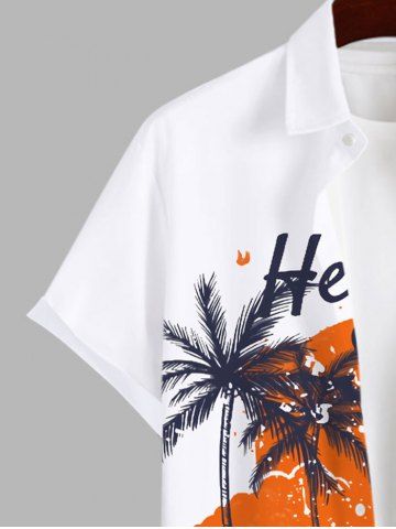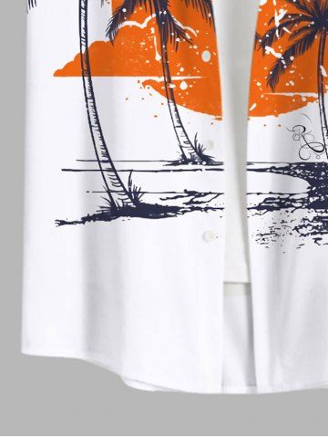 Chemise hawaïenne grande taille pour homme, avec imprimé cocotier, soleil et nuages, boutons et poche. - Blanc - Blanc