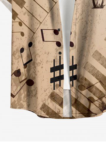 Chemise hawaïenne grande taille pour homme, avec imprimé de notes de piano et de cocotiers, boutons et poche. - Bronze - 2xl