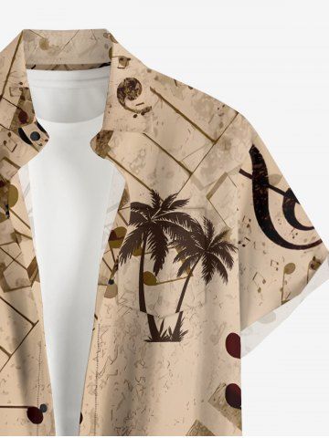 Chemise à Manches Courts> Chemise hawaïenne grande taille pour homme, avec imprimé de notes de piano et de cocotiers, boutons et poche.