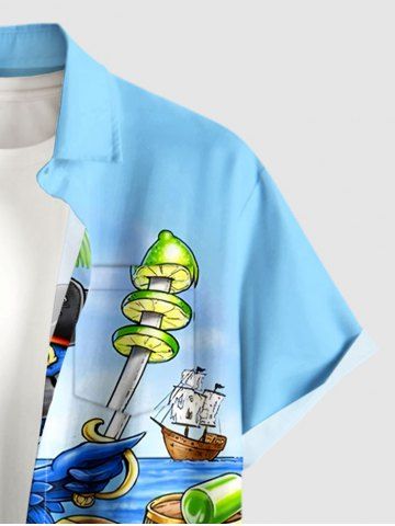 Chemise hawaïenne grande taille pour homme, avec imprimé perroquet, pirate, cocotier, jus de fruits, crâne et fleurs, boutons et poche. Motifs : perroquet, pirate, cocotier, jus de fruits, crâne et fleurs. Elle est ornée d'un motif de fruits, de fruits, de fruits et de boutons. Elle est vendue par des hommes. Elle est également vendue par des hommes. Elle est ... - Bleu Poudre - L