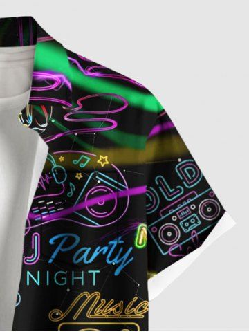 Chemise hawaïenne grande taille pour homme, avec microphone, écouteurs, imprimé cœur, boutons et poche, idéale pour les fêtes musicales. - Noir - Noir